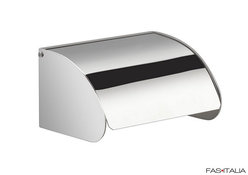 Portarotolo coperto cromato. Materiale: acciaio inox AISI 304. Dimensioni: 12,3x8,8x6,7 cm (LxPxH).