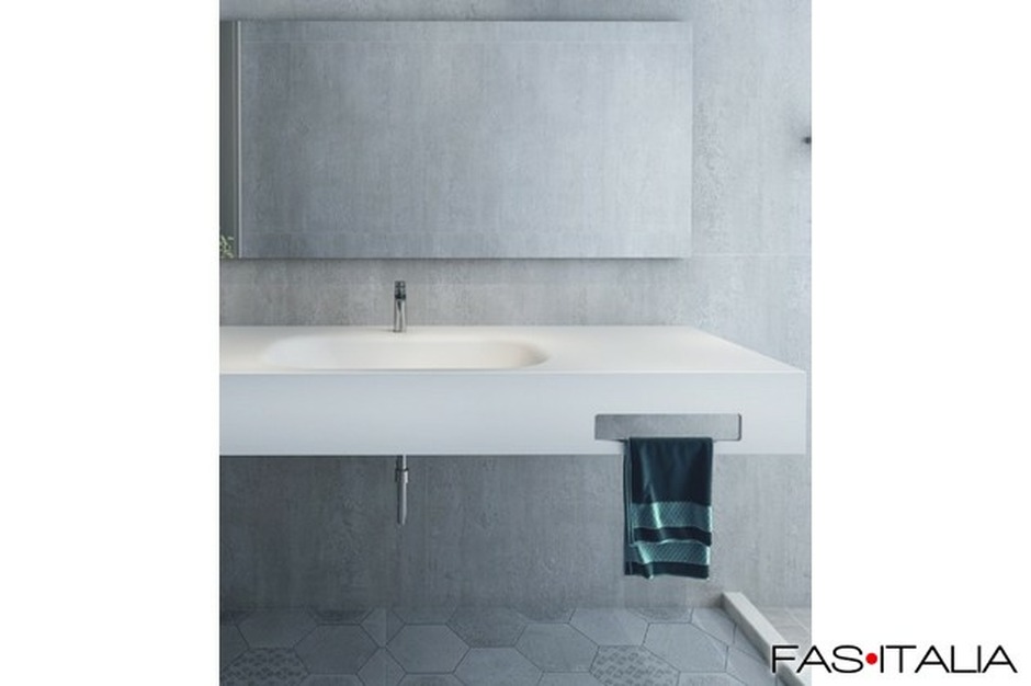 Porta asciugamani integrato nel piano lavabo, cod.40492 (1 pezzo) Porta asciugamani integrato al piano del lavabo, altezza 5 cm. L'accessorio è realizzabile su richiesta del cliente in qualsiasi punto del lavabo, alla larghezza richiesta. Essendo ricavato direttamente sul piano, il porta asciugamani non necessita di viti, colle o giunture.